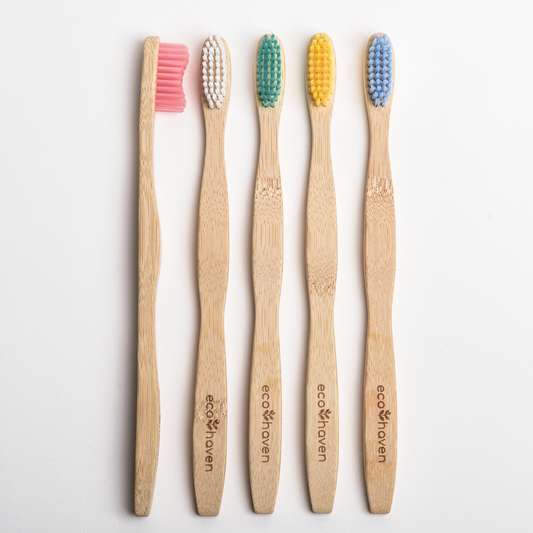 Ecohaven Bamboo Toothbrushes UK - Colourful- Pack of 5- Medium
